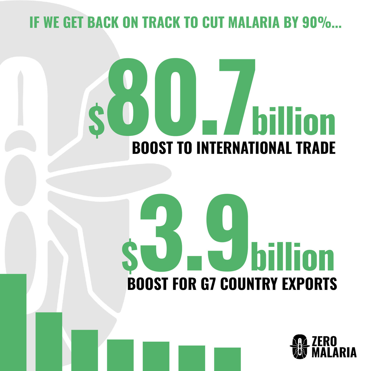 ECONOMIC BENEFITSInvesting more in the fight to end malaria will save millions of lives, grow African economies and boost trade for G7 countries and across the world.HEALTH SECURITYEconomic growth driven by lower malaria rates will allow greater funds to bolster public spending. These can be invested in health systems and by doing so, governments will be able to strengthen the health security of Africa and the whole global community.GLOBAL TRADEIncreased economic growth in malaria- endemic countries could lift trade from, between and into African economies. This trade boost could enable key countries to expand their life sciences capabilities, accelerating efforts towards ending malaria and other diseases.VACCINES AND OTHER TOOLSIt is vital that the malaria vaccines are rolled out in combination with other tools such as ‘next generation’ bed nets and reach all those that need them. In doing so, not only will lives be saved but economic benefits to the whole world could be realised.CALL TO ACTIONG7 and malaria-endemic countries should work hand in hand to drive greater investment in tackling malaria, through their domestic funding and through investments in Gavi and The Global Fund. These investments will save lives, unlock prosperity and strengthen health security.